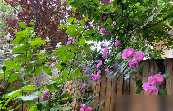 她的庭院却反其道而行——爬藤月季顺着墙角往上蹿,花苞饱满得像攒足了劲儿的生活热情;低洼处几丛雏菊,开得泼泼辣辣不矫情。